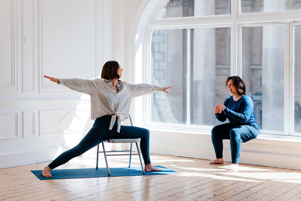 It’s also an approach to chair yoga that invites us to be gentle and challenge ourselves at the same time. We simply need a bit of reframing and creativity.